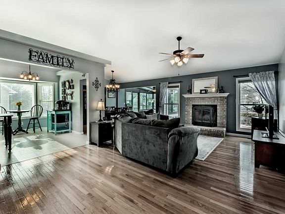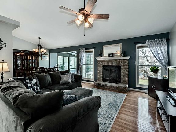 Space for everyone in this ranch with a finished lower level walk-out! Vaulted ceilings, wood floors & a fireplace in the great room lead to the open kitchen with newer stainless steel appliances & great natural light from the bay window. The dining room is connected to an awesome 4-season room with separate heating/cooling for year-round enjoyment! French doors keep the master suite private, with a walk-in closet & attached bath w/dual sinks & separate tub & shower. Watch the big game in the finished lower level walk-out with a stone-front bar & easy-care laminate plank floors. Also includes a bedroom & full bathroom & a bonus room which would make a great office or playroom. Host BBQ's on the composite deck. Located on a quiet cul-de-sac. Fun neighborhood with 2 pools, walking trail, playground & disc golf course. Westhoff Elementary just down the street, as well as Rascals baseball games at CarShield Field. Easy access to I-70 & lots of amenities & O'Fallon events. See it today!