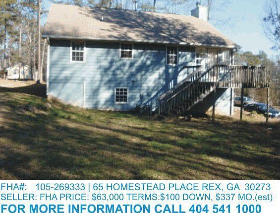 This 2469 square foot single family home has 4 bedrooms and 2.0 bathrooms. This home is located at 65 Homestead Pl, Rex, GA 30273.