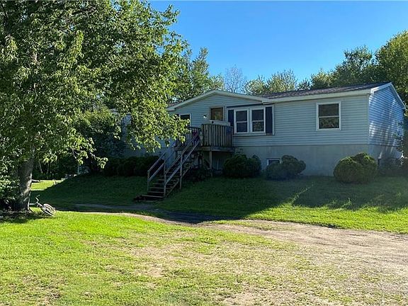 Welcome to this affordable 2016 Square foot raised ranch double wide mobile home set on 2.57 acres. This home has a large living room area, tongue and groove pine walls in the formal dining room. There are 2.5 bathrooms inside and fully wheelchair accessible. The basement with scuttle access to the walk in pantry was in the process of being transformed into 2 additional bedrooms. This property is also designated as being 2 lots, so maybe add another residence next door. One car garage under the home. Close to I81, close to shopping, on the ATV trails and close to the Salmon River fishing. All the amenities for the outdoors person.
