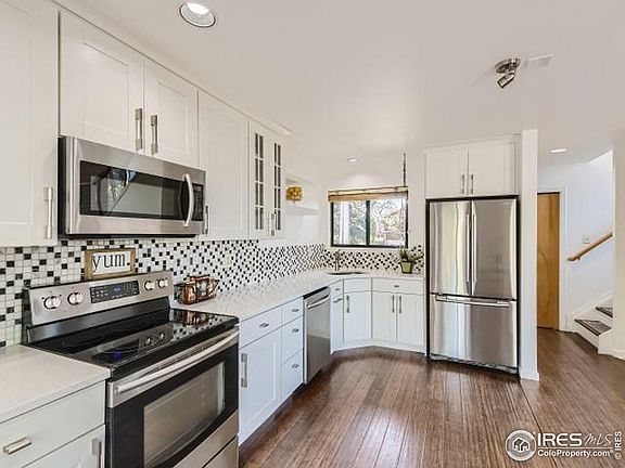 Discover this cool home in Greenbelt Meadows. Beautiful kitchen remodel with shaker cabinets, quartz counters and stainless steel appliances. Two primary ensuites, one upstairs and one downstairs for great privacy. Spacious, open floorplan with vaulted ceilings, wood floors and a fireplace. Upper level has main master suite with two closets, window seat storage and a lovely, private master bath. Add'l bedroom and add'l full bath also on the upper level. Downstairs, behind French privacy doors, you'll find the daylight lower level with a second master ensuite and an updated bathroom. Wonderful large outdoor deck for BBQ's or relaxing by your fire table with your morning coffee while enjoying the mountain views. Great HOA with pickle ball/tennis court, pool, hot tub, park and play area. Just steps from miles and miles of open space bike/running trails and a just a two minute bike ride to the fantastic East Boulder Rec Center. Perfect location with easy access to RTD, U.S. 36, Foothills Parkway, and South Boulder Road. You'll love it here!