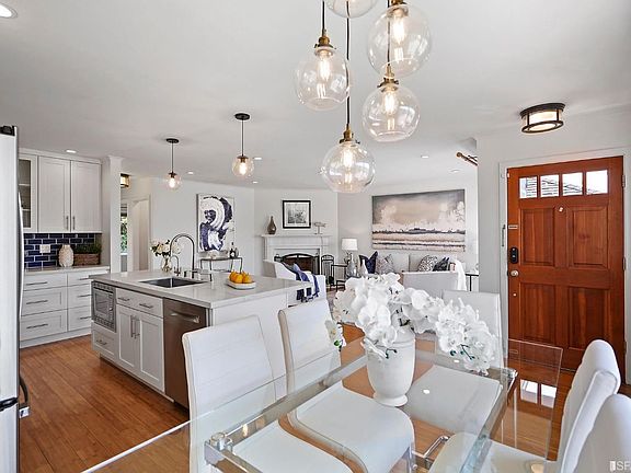 Welcome home to this updated 3 Bd/2 Ba single family mid-century home on a quiet cul-de-sac in the Excelsior neighborhood, bordering on the Portola District; nestled below McLaren Park (steps away from endless hiking trails, picnic areas, & dog walking/playing spaces). The home is adorned w/ great natural light; Southern Hill & some Ocean views; open kitchen/living/dining floor plan; bamboo floors; double pane windows; & wood burning fireplace in living room. The kitchen has a fantastic, large island w/ seating + sink; & high-end appliances for gourmet cooking. Additionally, there are 2 Bedrooms (facing the garden) & 1 full bath w/ separate tub & shower stall on the main lvl. The primary bedroom w/ walk-in closet & spa-like en suite bathroom (perfect for lovers of huge, deep soaking tubs & radiant heat!) are downstairs. A nice sized media room/office & thoughtful laundry room (not a closet!) complete the lower level. There is 1 car garage parking w/ interior access & a nice tiered back yard w/ deck, jacuzzi, & colorful plantings. Perfect for entertaining! You must see this home and location in person for all that it has to offer. Access to public transp.,freeways, dining, retail in this neighborhood & Bernal, Noe, Glen PK, etc. Ideal for singles, couples, or family living