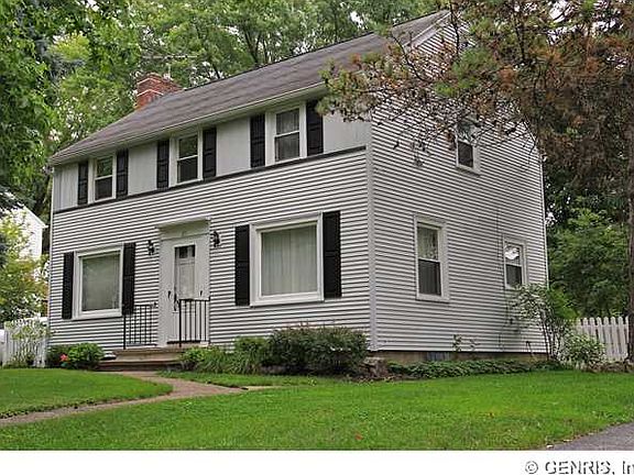 Just Listed... Gorgeous 3 Bedroom Colonial. Remodeled kitchen has Maple cabinets, with solid core countertops and tiled floor. All Kitchen appliances included. Formal dining room with gleaming hardwood floors. Huge living room with wood-burning fireplace and large picture window. Everything professionally painted top to bottom. Screened in porch overlooks Park-like yard. Vinyl maintenance-free siding. Architectural Roof-2004. Furnace and Central Air-2011. Water tank-2010. Excellent location, close to everything including U of R. Absolutely nothing left to do here. " Move in condition".