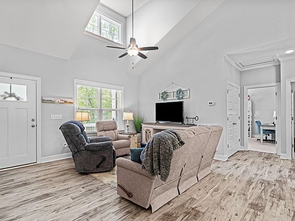 RANCH! Nearly New! Enjoy the tranquility of nature in this lovely home nestled in the woods. Open floorplan with vaulted ceilings & double dormer window that brings in lots of natural lighting. Custom LVP flooring in main living areas. Kitchen features granite countertops, breakfast bar island, stainless steel appliances, pantry & can lighting. Primary suite has 2 walk-in closets, double vanities, & walk in shower. Custom blinds, storm door, gutter guards, wood shelving, crown molding & picture framing along with a side entry 2 car garage. Relax & unwind on the rocking chair covered front porch, or your private rear deck. Don't miss this opportunity to make this beautiful home yours and create lasting memories. Welcome home to your own private sanctuary!