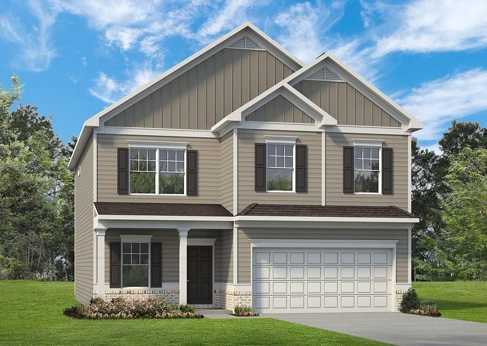 Move in Ready July 2023! The Harrington plan in the Jackson Farm community by Smith Douglas Homes. This two-story floorplan with its welcoming wide entry leading to an open living concept is perfect for entertaining. Both the kitchen and family room live to the rear of the home, with convenient access to the yard from the kitchen area. Dream kitchen features off-white cabinets, granite counters, tile backsplash and a convenient mudroom off the garage entry. Covered rear patio ideal for grilling. Private study with double glass doors on main level, Upstairs the large Owner's suite with a very large walk-in closet sits to the rear of the home, three secondary bedrooms, with walk-in closets and a laundry room complete this level. All this on a level homesite. Photos are virtually staged are representative of plan not of actual home being built. Smith Douglas Homes is the #1 private builder in the Atlanta area! Seller to pay up to $10000 in closing costs with use of preferred lender and accepted contract for a limited time only!