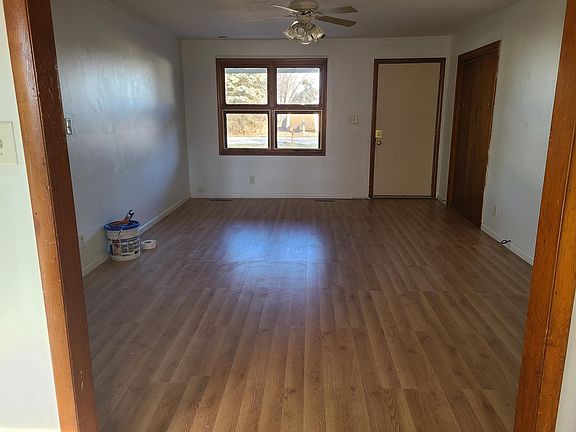 This duplex is located just a short way out of town in a quiet subdivision. There are 2 nice sized bedrooms with a large eat in kitchen and living room. Laundry connections are located just off the kitchen next to a pantry. New laminate wood-like floors installed in living room and bedrooms. Water and garbage are included in rent garbage and water included