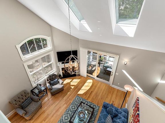 - Liv Dscrp: Fireplace, Flooring - Hardwood, Ceiling - Cathedral, Recessed Lighting, Slider, Skylight
