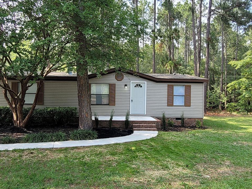 3 Bedrooms, 2 full Bath. Located near highway 210 between Raleigh and Fayetteville. New flooring, new bathroom vanities, new kitchen cabinets, granite counter tops, new light fixtures, new ceiling fan, and freshly painted. Stainless appliances: stove, refrigerator, dishwasher and microwave included. Enjoy your large patio and partially wooded