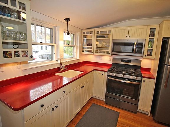 Well maintained, nicely updated 2 Bedroom Cottage with quiet side street setting. Upon entering the home, you will be surprised and delighted by the spacious, open floor plan. The updated kitchen has a gas range and stainless refrigerator and quart countertops. The beautiful hardwood flooring extends throughout. The doors have been updated and have handsome bronze hardware. The spacious bedrooms each have a large closet and are privately separated from the main living area and share a full bath with tiled combination tub & shower and radiant heated floor. Off the main living area is a welcoming enclosed porch that opens to the private back yard and can be used in a variety of ways. It could be potentially finished into almost 300 Square feet of additional living area. There are pull down stairs to great attic storage. The backyard is just big enough and there is parking in front for two cars. A beautiful Red Maple front highlights other mature landscaping. The Common Fence Point location is close to the water and nearby Marina but not in the flood zone. Owners have rights to walk around the water and secure a mooring. The recently updated community center provides many varied offerings to the surrounding residents. Plan to come see it soon!