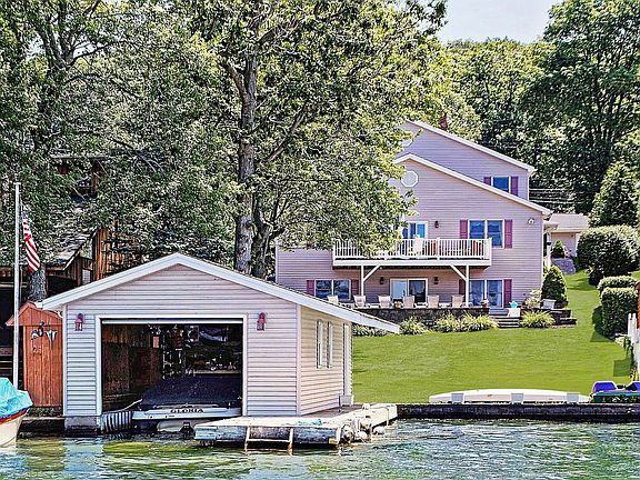 Lakefront Paradise! Rare opportunity for a King Cove home with room for everyone. Home is less than 20 years old and has all public utilities and natural gas. This home is even one of the rare few with a grandfathered, enclosed boat house, for year round boat storage. The amenities on this home abound, huge deck, large patio expansive level back yard, spectacular lake views and access, detached 2 car garage, tons of parking, 2 kitchens, fireplace, 6 bedrooms, 6 bathrooms, 2 home offices and a first floor den. Finally, a home that can be used for generations to come and can be that special lakefront paradise for endless summer memories. Enjoy amazing sunsets and and the ultimate lakefront experience for the rest of your life.