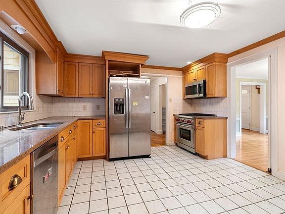 Elegant Brick Colonial located in one of Newton’s most prestigious sought-after neighborhoods, this graceful brick Colonial blends timeless charm with modern convenience. Set on a generous 12,766 sqft lot, and 2,182 sqft of living space, the first floor features an eat-in kitchen w/granite countertops and stainless steel appliances, a formal dining room, a spacious living room w/fireplace, and a versatile office/den. A full bath and half bath complete the main level. Upstairs, you’ll find three well-sized bedrooms and two full baths. The unfinished basement adds another 976 sqft w/high ceilings. A standout feature is the large detached carriage house easily fitting two cars, with bonus space ideal for a studio or workshop. Outside, the backyard is lined with mature trees and offers a serene setting for entertaining or relaxing. Additional highlights include a newer roof (2023) and an unbeatable location nearby to Newtonville center, Edmands Park, public library, and more.