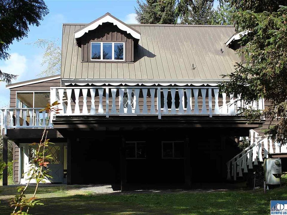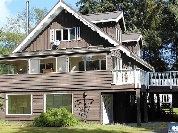 Zoned Rural Neighborhood Conservation, this picturesque property has so many possibilities!! The home has the character of a Swiss Chalet, and the upper level is quite spacious & luxurious. Lg master suite, beautifully updated kitchen, huge sun room, 2 lg loft BRs. Lower level former 'spa' has 5 rooms, sauna, bath, & steam room - but many possibilities! Conveniently located off Hwy 101, between Sequim & PA, it offers a retreat setting of luscious landscaping, fruit trees, pond, gazebo & ADU. ideal 1031!