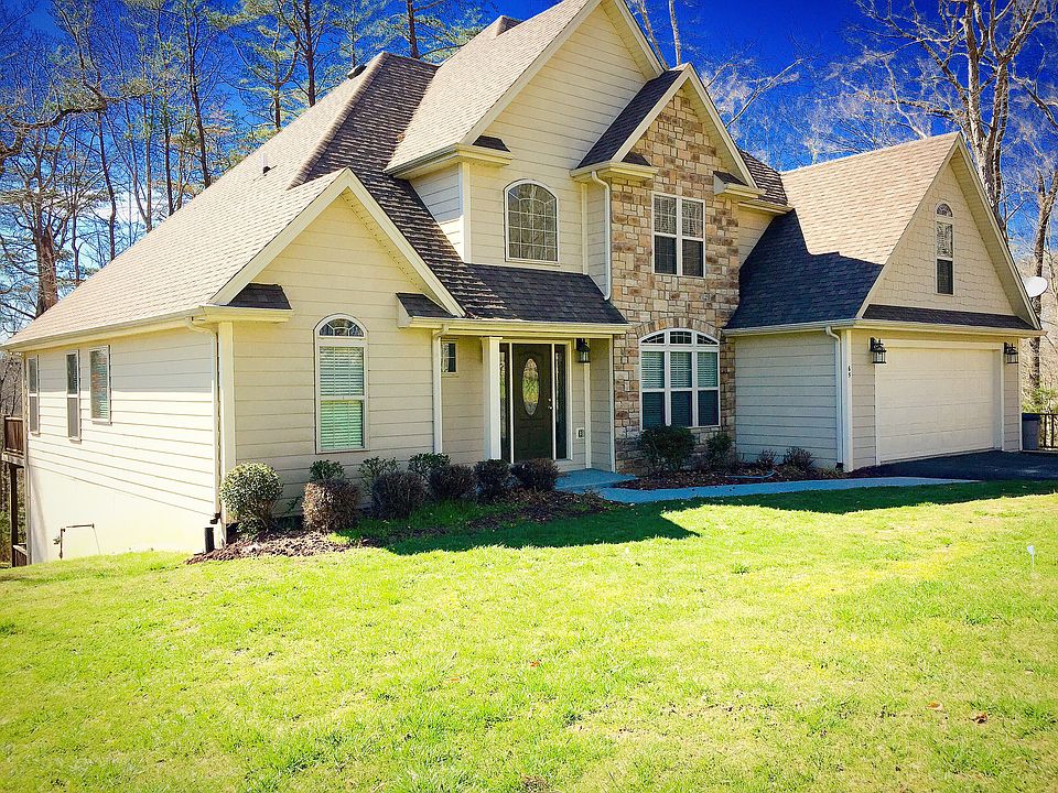 Remarkable lake home! This lake view house is located very near 4 launching ramps into Lake Cumberland.The long paved drive to the lake house is flanked by stone pillars, creating the feel of a private estate. Three levels of living space with a main level master suite(both bedroom and luxurious bath with lake view).There is a two story living room, separate dining room and breakfast room all with lovely wood flooring. Off the spacious kitchen is a light filled home office or reading room. Upstairs you'll find 3 generous bedrooms and a full bath. The lower level walk-out basement offers a space for family fun and recreation. The finished space has a corner fireplace, wet bar and plenty of room for game table or pool table. Additionally there is a 5th bedroom and 3rd full bath plus the bonus of another finished room that serves as an exercise room but could be the 6th bedroom. The patio from the lower level spans the length of the house as does the deck off the main level. Plenty of room for outdoor entertaining with lovely lake views. The exterior of the house is finished with cement board siding that has a reputation for being low maintenance and long lasting. Lovely stone accents finish the front as well as manicured landscaping. This house has been priced to sell quickly. Relax on the lake at The Cliffs in a private setting. Listing Agent - Tim Coffey 270-566-2325 Down To Earth Realty & Auction LLC