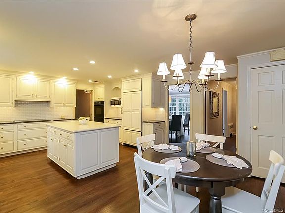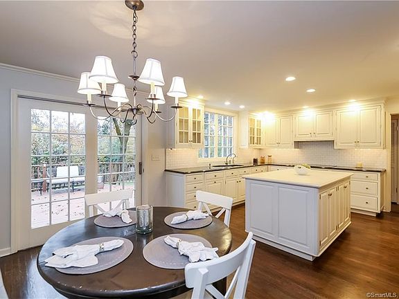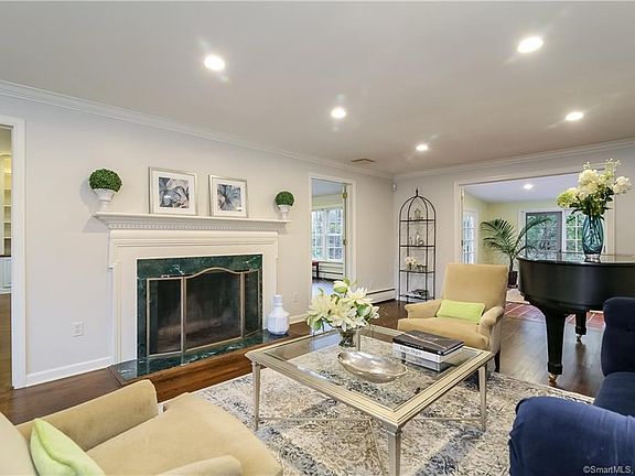 Welcome home to this Connecticut charmer which sits gracefully on over 2 flat acres. Offering so many features, including solid oak hardwood floors throughout and new top-of-the-line Marvin thermal wood windows, this home has it all with five bedrooms plus study, a wonderful bonus room with cathedral ceilings, wood burning fireplace and many built-ins, formal living room with second fireplace that opens? through French doors to tile-floored sun room, separate dining room, spacious Kitchens by Deane eat-in kitchen with granite counters, subway tile backsplash and sliders to a fabulous deck with plenty of seating for outdoor entertainment. Beautiful park-like neighborhood in a quiet, convenient, west-side location only minutes to town.