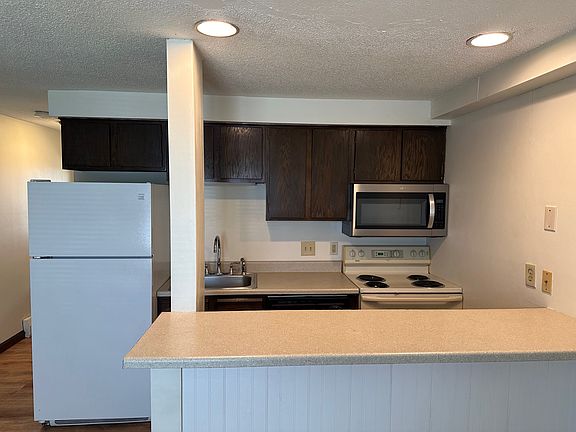 This large heated 1 bedroom apartment is on the 1st floor and located in a small complex in North Deering. There is a large open living room & kitchen area. From the living room, you have access to your private patio. The kitchen has a breakfast bar, dishwasher, stove & microwave. A separate laundry area allows you to hook up your own washer and dryer; however we charge an additional $50.00 /month. If you do not use the hook up it is extra storage space. The spacious bedroom has new flooring. Heat is included and parking for one car is free, additional cars are $50.00/ month. Lease and security deposit are required and are not negotiable. Cats are welcome with an additional $150.00 deposit. Sorry, no dogs of any size. Non-smokers only. Thank you, Application, references, security deposit and lease are required prior to moving into any of our units. We are currently offering 1 year leases for individuals who qualify. Non-smokers only.