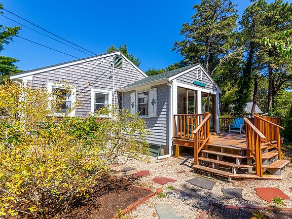 Turnkey investment opportunity in South Chatham! Just .6 miles to Cockle Cove Beach, this classic 3-bedroom, 1-bath ranch offers an unbeatable combination of location, charm, and proven rental performance. South of Route 28, you're moments from the Old Colony Rail Trail, Chatham's seasonal Farmer's Market, and have quick access to the shops, restaurants, and sights of Harwich, Brewster, and beyond. Inside, the 1,251 sq. ft. home features hardwood floors, a wood-burning fireplace in the spacious living room, and a cozy sunroom with sliders out to the wrap-around deck. The kitchen/dining area opens to a screened porch, perfect for breezy summer evenings and includes a clever trap door to the basement, discreetly hidden under the seat of a bench. Central air was added in 2021, the roof is from 2019. Additional highlights: an outdoor shower, full basement with interior and bulkhead access, and parking for two cars. This home offers a quiet South Chatham neighborhood with easy access to beaches, trails, and nearby villages. Ideal for both personal enjoyment and proven rental potential, rental data available on request. Sold furnished and stocked, less personal items. All parties to verify information contained herein.