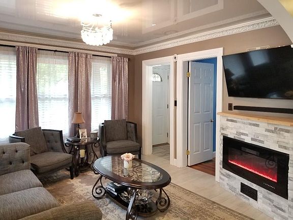 Attention owner occupied and investor buyers! This spacious & updated 2- family with 3 bedrooms in each unit, separate utilities, gas heat & 2-car garage is conveniently located in West Springfield with easy access to area amenities & highways. First floor offers central air, custom finishes & beautiful chandeliers; living room with crown moldings, custom ceiling & beautiful electric fireplace; dining room with tray ceiling & recessed lights; large kitchen with tile floor & backsplash, pantry & slider to a sun room; remodeled bathroom with beautiful tilework; all 3 bedrooms have wood floors & closets, larger bedroom has 2 closets. Well-maintained 2nd floor apartment has similar layout with large living room, dining room, kitchen, full bath & 3 bedrooms. Amazing backyard has a newly built concrete patio, with gazebo, beautiful gas fireplace with the waterfall & a play area with a swing set. Other features: walk-up attic & large basement with laundry for each unit. Don't miss this one!