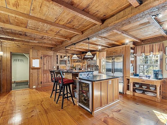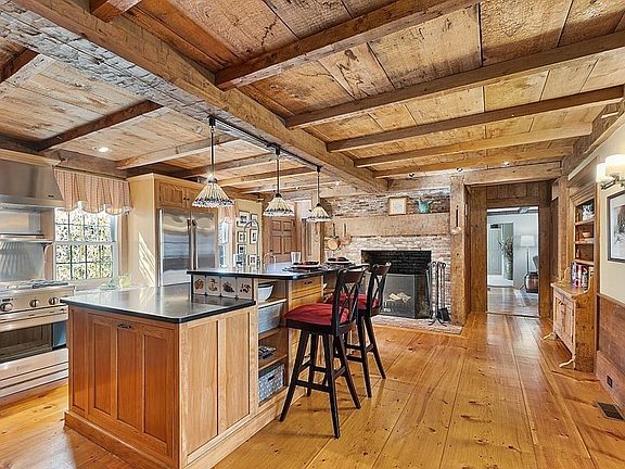 - Features: Beamed Ceilings, Flooring - Wood, Pantry, Countertops - Stone/Granite/Solid, Kitchen Island, Stainless Steel Appliances, Gas Stove