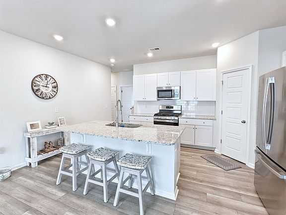 - Features: Breakfast Bar, Kitchen Island, Pantry, Stainless Steel Appliances, Solid Surface Counters