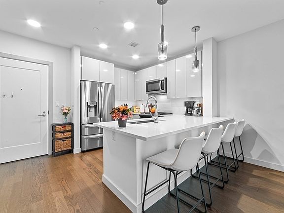 Welcome to Slip 65 at Clippership Wharf—a luxury, full-service building, located directly on Boston Harbor with unobstructed city skyline views. This spacious one-bedroom with garage parking offers a generous floor plan with lots of sunlight and breathtaking views. Features include, stainless steel appliances, gas cooking, high gloss Euro-style cabinetry, quartz countertops and an in-unit washer/dryer. Enjoy the sunset views from your oversized private balcony, directly off the living space, which provides ample room for outdoor furniture set-ups. Community amenities include 24-hour concierge, outdoor grilling & entertaining areas, private event space, a state-of-the-art fitness center and more. Enjoy Convenient commuter location adjacent to the MBTA Maverick Station, on the blue line. Also, the water shuttle to downtown and Seaport is just outside the building doors.