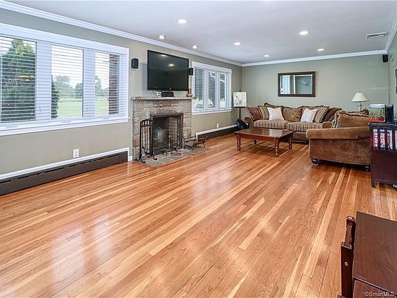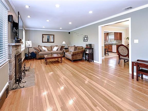 This wonderful ranch style home in the north end of Stratford offers easy living. Whether you're intending to scale down, move into a first home or are somewhere in between and just want it all - this is the home for you. Beautiful hardwood floors throughout, a gracious wood burning fireplace and an abundance of natural light highlight the living and dining room spaces. These rooms flow freely into each other and are accentuated by a very substantial remodeled eat-in-kitchen with so much storage, granite counter tops and center island. The two bedrooms are generous in size and the bathroom has been remodeled. The partly-finished (unheated basement is entered through the garage and offers tons of storage and many options for additional living space if needed. There have been many updates such as the chimney liner, hot water heater, central air and more.