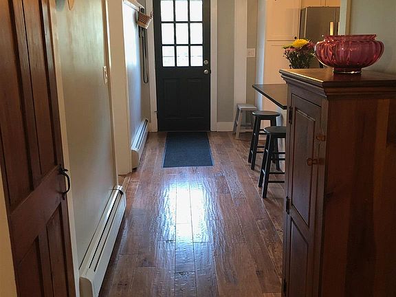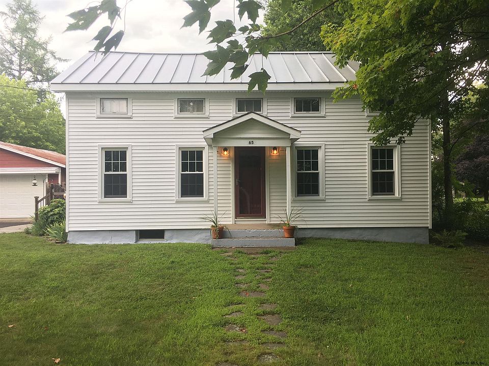 A classic "eyebrow colonial" in a saltbox package. Don't miss this updated charming colonial on a private & beautifully treed lot! The 1st floor boasts a bright, sunny kitchen, with a large formal DR, LR w/pellet stove and 1st flr laundry. 2nd flr features 3 BR's, a newly renovated bathroom with tiled shower w/glass enclosure. Soapstone counters, HDWD floors throughout, stainless steel appliances and updates galore! Additional updates include new windows, siding, metal roof, appliances, garage doors and much more! The backyard is filled with peace and serenity featuring a lovely stone patio, gardens, fruit trees and open area with views of greenery and trees. Separate two-car garage. 15 minutes to Hudson, 30 minutes to Albany. Walk to town park, falls, and new Electric Trail.