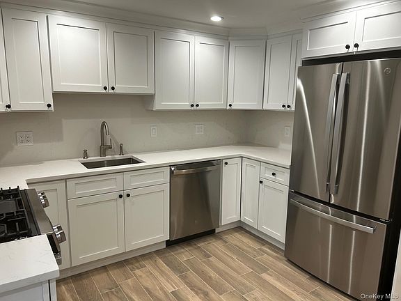 Beautifully renovated garden apartment, featuring 3 bedrooms, new eat in kitchen with stainless steel appliances, large living Room/dining room, new tile floor, new bathroom and HVAC system, laundry, side yard, outside storage shed. Close To Manorhaven Community Beach and Pool Club, park. Must see move right in!