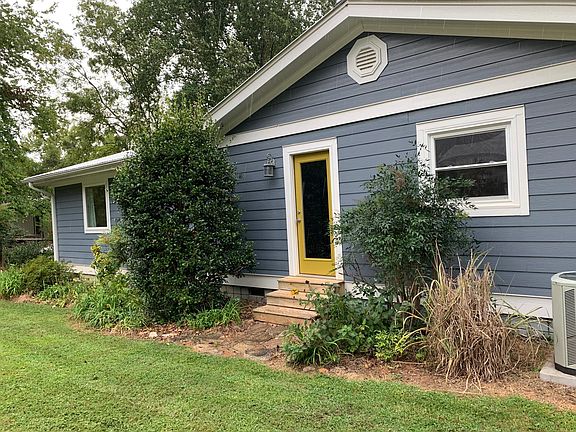 Four-Bedroom, 2 1/2 bath Family Home near Historic District One story home in the center of Pittsboro with hardwood floors, 1/3 acre yard, on a quiet, dead end street. Over 2,000 sq feet. Spacious kitchen with new refrigerator and ample countertop space. Food pantry for extra storage. Includes dishwasher and washer/dryer. No carpet, open floor plan, ceiling fans in each room and on the front porch. Primary bedroom is on the opposite side of the house from two children's bedrooms, 4th bedroom could flex as a home office or quiet lounge. Comfortable den off the kitchen with a fireplace. Large living room with entryway storage and beautiful light through the day from the vaulted ceiling. Tell your kids to get ready to play on the swing-set in the yard, walk to downtown shops, and make s'mores in the backyard. The large front porch with a swing is a great spot to unwind. Gardeners will appreciate the raised beds in the backyard, lush landscaping, and the backyard shed. Quick walk to Pittsboro Elementary school playground and fields and the Town Lake trails. non-smoking property