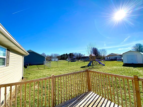 Well built, well maintained and MOVE IN READY! Take a look at this spacious ranch home built in 2018 and sitting on a wonderful flat 1/2-acre lot. This inviting home offers an open concept layout with hardwood floors, vaulted ceilings, and neutral paint colors. Stainless appliances compliment the custom cabinetry and oversize island. The primary ensuite boasts the same tall, vaulted ceiling and an expansive walk-in closet. A dedicated laundry room and two car garage makes the perfect layout. Enjoy sitting outside on either the covered front porch or the nice sized deck on the back of the house. This home offers lots of flat green space for your enjoyment and storage is abundant with this like new 12x24 storage building.