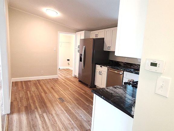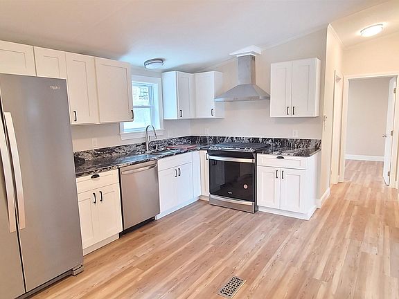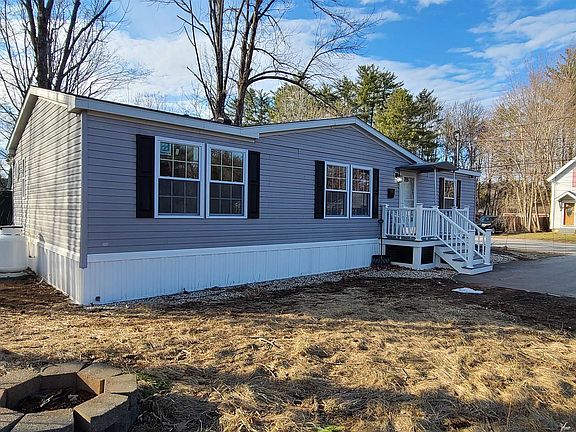 BETTER THAN NEW AND ON ITS OWN LAND--NO HOA FEES! This 2004 home has been completely refurbished from top to bottom! New roof, windows, drywall, paint, and LVF flooring AND a gorgeous kitchen with all new appliances,(gas stove, hood, refrigerator, and dishwasher. New, white, cabinets with spectacular black/white granite countertops with backsplash. Durable and beautiful luxury vinyl flooring throughout! Primary bedroom suite with huge 3/4 bath with all new shower and glass slider door, stunning vanity cabinet with marble top, plenty of space in linen closet, and a walk in closet as well. Two more spacious bedrooms on opposite end of home for privacy, with a full, remodeled bath as well! Full laundry hookup room just off the kitchen leading to the back yard. This home sits on a very level .13 acre and waiting for your gardening touches. A good size shed out back, a fire pit, paved driveway and a location to get to Route 11 or Route 16 easily. Just a minute away to downtown Farmington, 5 mins. to shopping on Route 11, golf course, a 1/2 drive to the Lakes Region, 45 mins. to Portsmouth, and an hour to the mountains. The perfect starter home or for the empty nester to downsize! SHOWINGS START AT THE OPEN HOUSE, SATURDAY, APRIL 5, 2025, 10:30 AM TO 2:00 PM