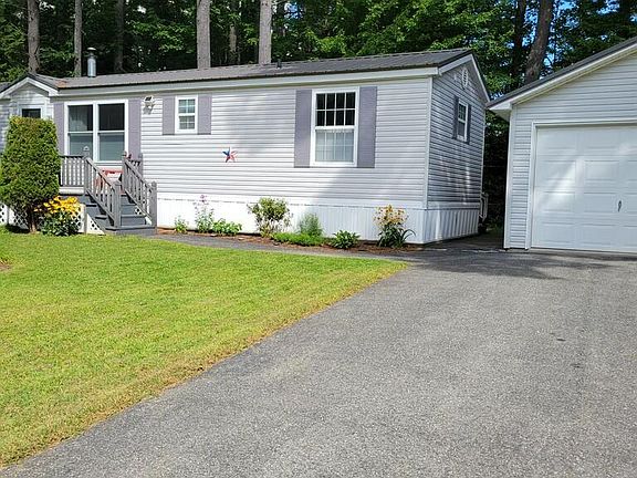 This well taken care of mobile home is located close to shopping, dining, and healthcare facilities, this home combines comfort, convenience, and 55+ community spirit in a serene setting. Close proximity to town, the interstate, shopping and healthcare facilities. It boasts two bedrooms, two full baths and has been professionally painted through out. All the windows are draped in new window coverings. Heat pump centrally located for year round comfort. Front and back decks for your enjoyment, along with a one car garage for added storage, vehicle parking and an electric overhead door. Small pets under 25lbs welcome. Make this your next chapter- easy living awaits! HUG Tag/Info located in freen binder in spare bedroom closet overhead. Application to the park must be filled out with park owner and approved prior to closing. There is a one time entrance fee of $500.00 and month to month lot rent of $400.