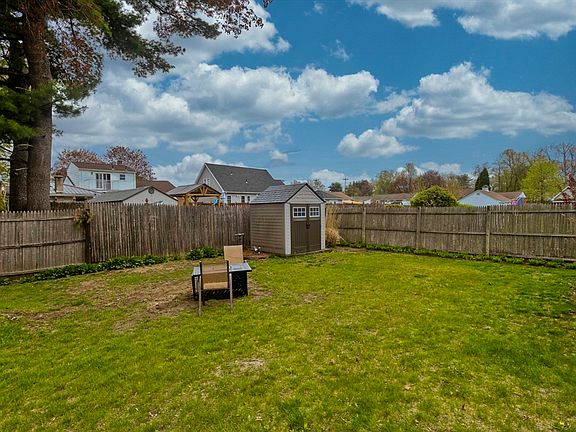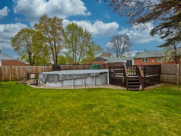 6 room, 3 bedroom brick ranch with a 1 car garage You'll fall in love with this beautiful home. Huge L.R. repainted, wood floors redone with big picture window. The kitchen has tons of pretty grey cabinets with a new backsplash and counter top and beautiful grey tiled floor that bring the whole room together with new lighting TOO! Bedrooms, hall and bathroom repainted and has a laundry chute. A cute den with tons of natural light and access to your 1 car garage and sliders to a good size fenced back yard. Here you'll find a large deck making it easy to get into the oval pool which I'm sure you'll enjoy this summer. A partially remodeled cellar with 2 rooms divided by french doors and 2 heating zones. Replacement windows, new hatchway, new shed make this home very desirable and won't last long.