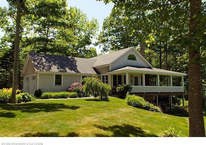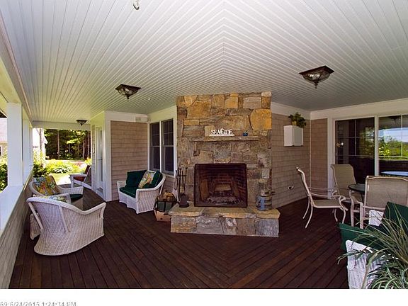 Stunning contemporary, the residence of a well known custom home builder in the Mid-Coast Maine area. Back to back indoor/outdoor fireplaces for a dramatic flare and enjoyable evenings on a very generous porch looking out across Penobscot Bay. Very private with great utility and convenient location, just a few steps from one of the areas only sandy beaches on the ocean.