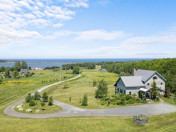 Uncover the unparalleled charm of this extraordinary 5-bedroom, 5-bath timber frame home, meticulously crafted from salvaged barn wood and adorned with beams from historic barns. Central to its design is a majestic white pine tree over a century old, adding a touch of heritage to this architectural gem spanning about 6,000 square feet. Currently serving as a family residence, this unique property also offers commercial potential. Located near Melmerby Beach and a short drive from Trenton airport, as well as within reach of the international airport and prestigious golf courses, this residence provides a serene escape with convenient access to amenities and attractions. The main level's open concept boasts cathedral ceilings, exposed beams, and exquisite wood floors. The kitchen features soapstone countertops, while a spacious dining room, office, and family room with a grand sandstone fireplace, offer stunning views of the Atlantic. The second floor includes a balcony overlooking the great room and the primary bedroom with a fireplace, walk-in closet, balcony, and lavish ensuite bathroom. The third floor offers another bedroom and sitting area. The lower level encompasses three bedrooms, two baths, a sauna, a games/exercise room, a theater, and multiple fireplaces. Each level's outdoor deck provides ample space for leisure and gatherings. The master bath showcases slate-tiled shower walls for added luxury. With its distinctive attributes, flexible layout, and prime location, this property offers a rare opportunity for those seeking a unique living or business environment. An outdoor fireplace on the main level enhances the property's appeal, creating a cozy setting for outdoor activities and relaxation. With 2.3 acres and access to a lovely beach to moor your boat and swim, enjoy East Coast living. More acreage is available and negotiable. Watch the fishers from your balcony and call them to have lobster delivered to your door. Explore the matterport here.