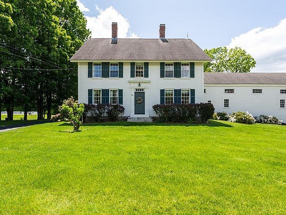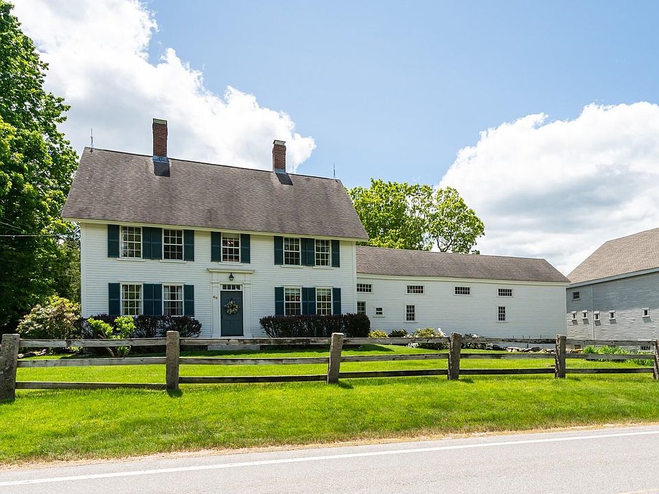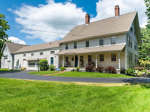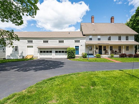This stunning Bedford NH home combines history, beauty and convenience. A mere 2 minutes from major highways, this 1835 farmhouse has been updated with 21st century amenities and is situated on 3.65 acre oasis of rural tranquility. The renovated kitchen includes Wolf and Sub-Zero appliances and Crown Point cabinetry. The expansive custom-made endgrain cherry island is perfect for informal dining and entertaining. The kitchen opens up nicely to the comfortable family room. The living room has one of the three Rumford fireplaces and leads to cozy music/office/library with built-in bookcases. An elegant dining room, powder room and mudroom complete the first floor. Upstairs finds an expansive ensuite primary bedroom with abundant closets, 2 additional large bedrooms plus full bath and laundry room. The second floor hallway has a convenient back stair case to the mudroom and attached garage. Connected to the laundry area is an unfinished Ell of 1008 sq ft, ripe for expansion. The third floor has 2 additional bedrooms with a 1/2 bath and large open sitting or exercise space. Wide hardwood floors and oversized windows extend throughout the home. Homeowner recently installed complete water purification system at point of entry. Property also includes a magnificent 3000 sq ft original barn, recently updated with steel beams and pylons. Beyond the house is a 3 bay garage/equipment storage building. Down the grassy hill is a pond, a meadow and private woods. A SPECTACULAR HOME!!