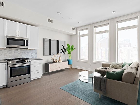 Contemporary 1 bedroom/1 bathroom condominium located in the heart of vibrant East Boston. The light and airy home boasts nearly 10 ft ceilings, hand-brushed oak flooring and 7 ft front facing windows. Open concept living room/kitchen is equipped w/ a Bosch appliance package w/slide-in gas range. The spacious primary bedroom has double closets with direct access to a private rear balcony. Oversized bathroom features a large shower with marble tile set in a herringbone pattern, floating vanity and stackable washer/dryer. Central HVAC with smart thermostat, video intercom w/smart phone access round out this amazing property. This recently built boutique building also has an elevator and private storage in the basement. Life could not be easier with Eagle Hill Cafe at your front door, enjoy your coffee & bagel while you commute a mere 4 mins to the Maverick Sq T. Walk to walking and biking paths and the East Boston Waterfront including the Tall Ship Restaurant with more to come.