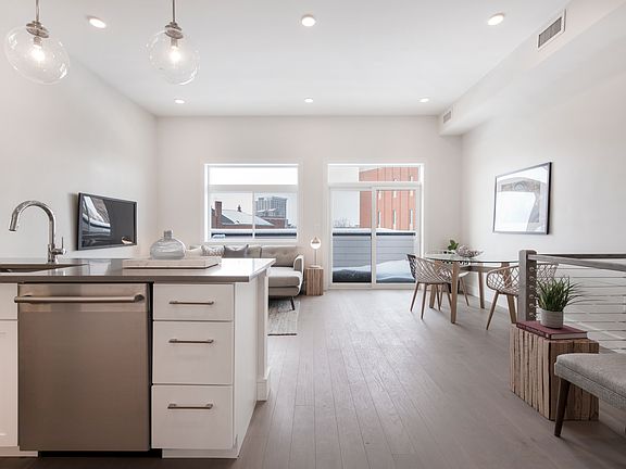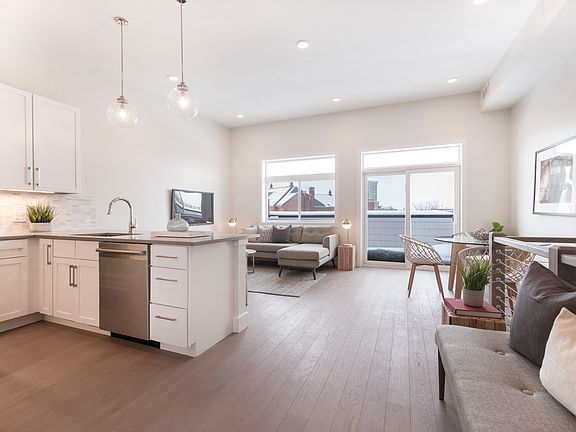 A truly unique home located on the top 2 levels of a newly constructed, 5-story, brick, elevator building overlooking Maverick Square & the Boston skyline. This 3 bedroom, 2 bath penthouse duplex features 3 private decks, including a large terrace off the living room w/panoramic skyline & harbor views! Sophisticated architectural design includes 10’ ceilings & striking 7’ windows. Warm modern finishes comprise hand-brushed oak flooring, quartz countertops, marble backsplash, a maple & cable staircase, LED down lighting, Bosch & Electrolux appliances. The Master bedroom includes a private deck & master bath adorned with Calacatta & chevron tile. Customizable closet systems have been installed throughout. WI-FI Smart Thermostat, Video Intercom w/smart phone access & private basement storage. Parking spaces available for lease. This premier location is a 5-minute commute downtown & just steps to many of East Boston's waterfront amenities, beautiful green space & fabulous restaurants.