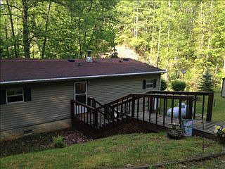 Wonderful doublewide, creekside and nestled in a beautiful setting. The perfect mountain vacation home or year round retreat! Very private with lots of yard space rushing creek along property with great landscaping. Home has extra large bedrooms and closets, huge family room with new gas fireplace for extra winter comfort! Family room opens to the very spacious kitchen with large island. Master bedroom and bath are exceptionally spacious, featur