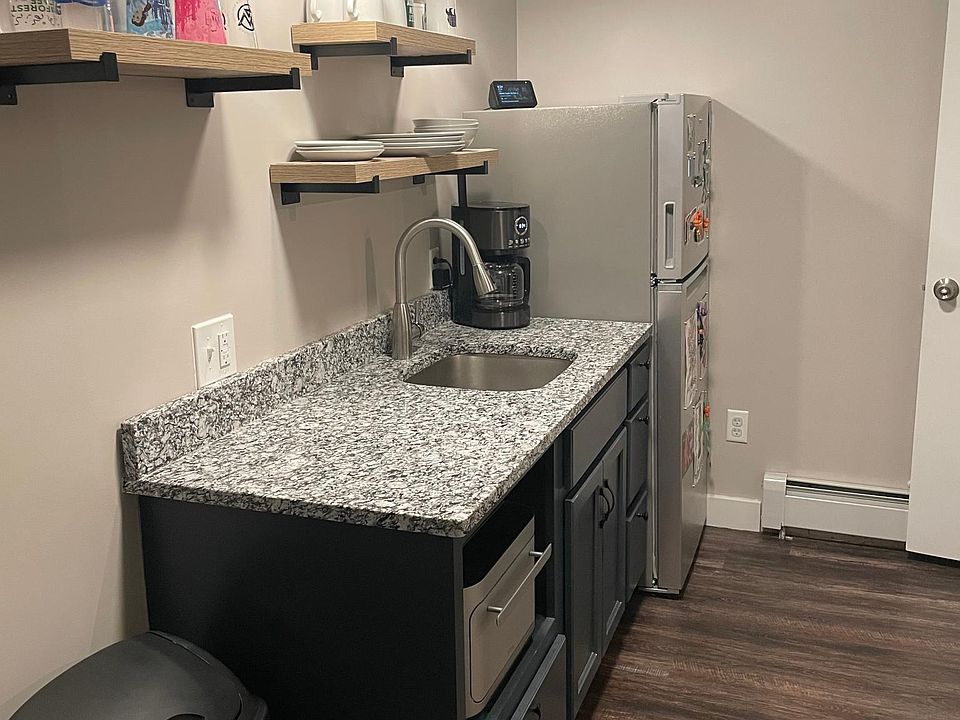 Beautiful condo in downtown Manchester's historic district. Corner unit, two floors, fully renovated. Two large bedrooms with closets along with one full bath upstairs and one half bath downstairs. Great layout downstairs with columns and exposed beams, along with exposed brick in the kitchen. Comes with a dedicated off-street parking spot. Laundry included.