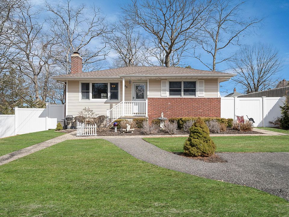 Welcome to this delightful 2-bedroom, 1-bathroom ranch-style home, nestled in the peaceful North Shore Beach section of Rocky Point. Come inside to find gleaming hardwood floors, enhancing the home's warmth and character. Cozy up by the wood-burning fireplace in the living room, creating a perfect setting for relaxing or entertaining guests. Offering a perfect blend of comfort and convenience, this home features an eat-in kitchen with sleek stainless steel appliances and beautiful granite countertops. The kitchen also boasts easy access to the backyard. The hallway includes a washer and dryer for added convenience, while the updated bathroom provides a modern and refreshing space. The spacious unfinished basement offers an abundance of storage options and additional washer & dryer. This home has been well-maintained and is move-in ready with numerous recent updates, including a brand-new oil tank, updated 200 amp electric panel, new railings, brand new bilco doors, fully insulated attic with a new attic fan (installed just two years ago). The 2-car driveway, only 8 years old, provides ample parking, and the property is highlighted by a classic Belgian block curb for added curb appeal. Beach access is just a couple blocks away. Don’t miss out on this beautifully updated home in a sought-after location! Make it yours today!