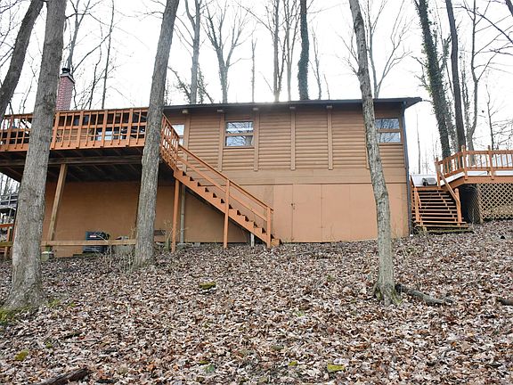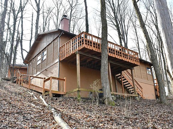Turn-key log sided cabin in Hide A-Way Hills. This 2 bed, 1.5 bath cabin has wood floors throughout. The great room/kitchen combo has cedar vaulted ceilings, stone wood burning fireplace & deck. Master has it's own private deck & half bath. Cabin comes fully furnished. 2018 EZ Go gas golf cart remains with property. 1993 24' Sweetwater pontoon boat is negotiable. Hide A-Way Hills is a gated community with 24 hour security. The community has multiple lakes for boating, fishing and kayaking. The community also has golf, pool, tennis, disc golf, ORV trails, gun range, organic garden, beach, barn, lodge, clubhouse and brewery. Plenty of amenities for all ages of year round fun. Don't miss out on this great opportunity in a HAH-MAZING community!!