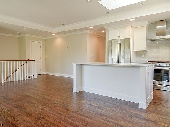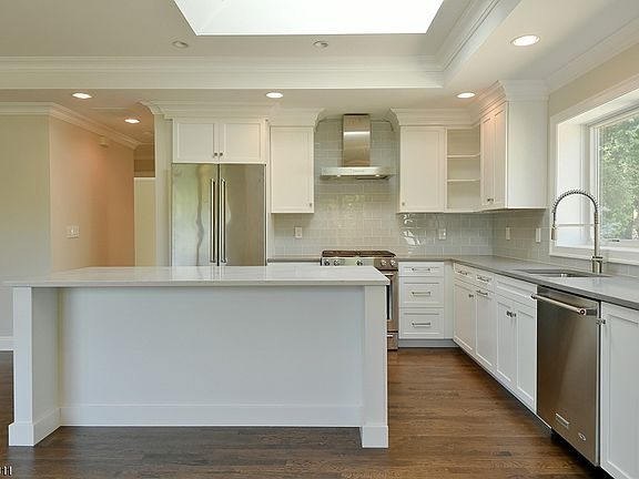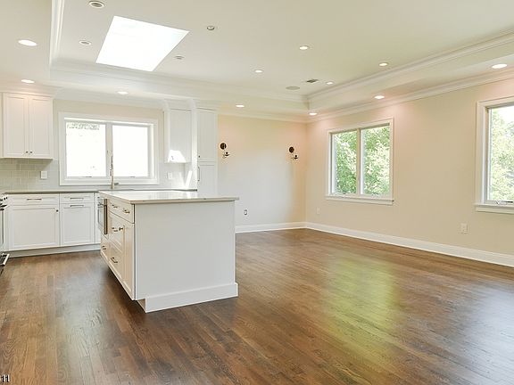 Beautiful 4 bedroom, 2 bath split level home meticulously renovated with high end finishes throughout and stunning open floor plan - everything brand new and pristine! Close proximity to town & train. Beautiful hardwood floors, stunning kitchen w/ss. Kitchenaide appliances, white cabinetry, large granite center island w/built-in microwave, water filtration system & tile backsplash; open concept LR w/large windows, high ceilings, skylight & custom lighting; California closet systems, master w/tray ceiling & his/her closets; ground floor office & FR w/built-in desk & storage, slider to patio & fenced backyard w/underground lawn sprinklers, new landscaping & gas BBQ line; garage w/abundant built-in storage & stand alone refrigerator. New CAC & heating, central vacuum & fios ready.
