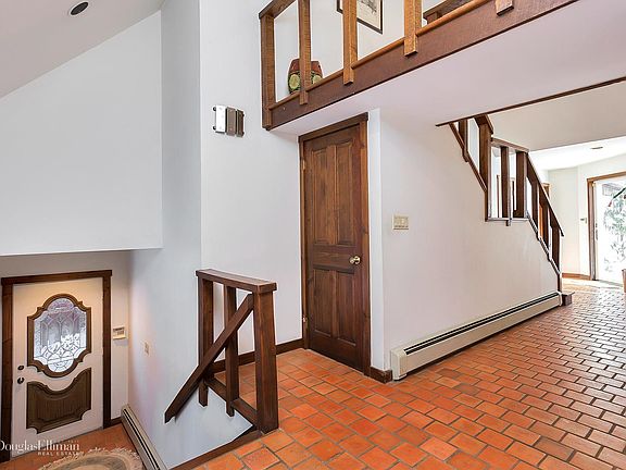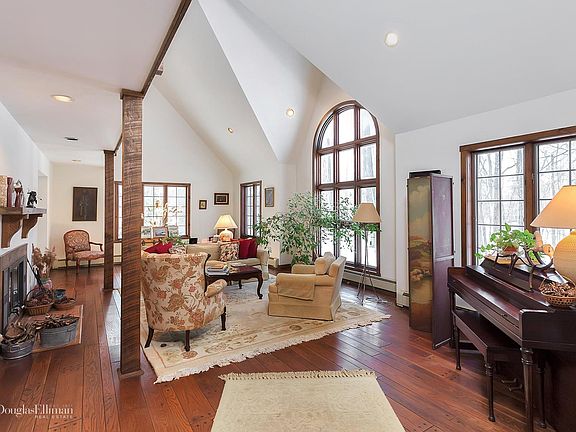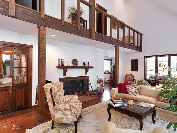 Beautifully sited on 4 plus acres on sought after Mt. Holly Road. Custom designed and built by original owner. Property enjoys running brook, stone walls and tranquil wooded setting perfect for bird watching. This arts and craft contemporary with dramatic cathedral ceilings, floor to ceiling windows and pegged oak hardwood flooring throughout is a wonderful escape. Private first floor master suite with fireplace and french doors to stone patio Master bath with walls of closets and separate spa tub and shower. Great room with soaring ceilings, Large windows wood burning fireplace and a unique wet bar. Eat in kitchen with ample oak cabinets with built ins leads to large dining room with french doors. Main level laundry and mudroom with direct access to over sized two car garage. Minute to charming Katonah village and train. Easy access to I684 and Metro North
