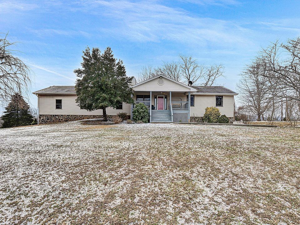 Welcome to this stunning contemporary ranch on over two acres of land, perfectly situated between Roanoke and Smith Mountain Lake. This home offers picturesque mountain views, an inviting front porch perfect, and a design that blends comfort with modern convenience. Step inside to find a bright, airy layout filled with natural light, enhanced by a vaulted ceiling and skylights that bathe the living room in warmth. The home boasts two cozy gas fireplaces, ideal for relaxing evenings, and a thoughtfully designed main-level laundry room for added convenience. Storage abounds throughout the home, from the oversized 2-car garage to the spacious closets on the lower level. Recent updates include a remodeled lower-level bathroom, an improved drainage system, several new windows, a newer electric heat pump (2022), and a new hot water heater (2024). Perfect for anyone seeking a peaceful escape with modern comforts, this property is a true retreat.