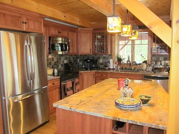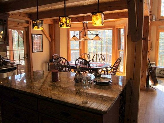 The New York Times' Bill Pennington coined Gore Mountain in March of 2009, "New York's Ski Industry's Sleeping Giant," which has over the past decade summoned four season outdoor enthusiasts to the North Creek area from all over the north east. The Preserve at Gore Mountain established in the mid 90's was ahead of it's time; a new development consisting of 55 single family lots in a 642 acre wilderness preserve just 5 minutes to the access road to Gore Mountain Ski Resort. The Preserve's amenities include a 20.75 acre pond with a dock, 586 acres of common area land with hiking, snowshoeing and cross-country ski trails, an 1,822SF Adirondack motif clubhouse with a lounge, exercise room, sauna, men's and women's rest rooms and professional landscaping, as well as an in ground swimming pool and two regulation size macadam tennis courts.This 2009 custom built Timberframe home nestled on 1.16 acres, and just a stroll to the clubhouse and Oven Mountain Pond, with dramatic views of Gore Mountain trails, beholds all of the architectural flair and sturdiness post and beam joinery boasts. Inspired by historic American barns, the timber frame home has a utilitarian, yet artistic, American folk style with dramatic cathedral ceilings, and custom built-ins. Upon stepping through the Frank Lloyd Wright inspired etched door, a blue stone entrance flows into the finished blond bamboo floors which run throughout the home, and slate graces the screened in porch off the kitchen. The designer kitchen is laden with ash prairie style lensed cabinets and all stainless steel GE Profile appliances. Wrought iron hardware, a built-in wine rack, granite countertops, and Italian handpicked backsplash tiles create a working area that is as elegant as it is functional. The cozy dining area overlooking the deck and views of Gore seats up to 10 people comfortably and leads into the great room. A floor to ceiling 2" thick granite stone masonry wood burning fireplace is showcased in the main living area, wired throughout for cable and a Bose speaker system. The raised hearth provides an added sitting area fireside and the Hubbardton Forge lighting fixtures cast soft art gallery-like shadows around the dramatic beams overhead and above the foyer.To the east of the living room is the 1st floor master bedroom with its own private access to the expansive deck overlooking the forest and mountains. There is a step-in linen closet area, a separate walk-in closet and a master bathroom with a Sherman tile shower, and 2 sink vanity.To the west wing, is a mudroom side entrance with outdoor sports equipment storage, a rustic bench and coat rack, front loading Whirlpool washer and dryer and a bathroom handsomely decorated with granite and warm colors schemes.The 2nd floor staircase is another work of art in itself and leads to the additional three bedrooms, one of which suffices as a cozy office. One of the bedrooms has its own walk-in closet and two of the Gore facing rooms have additional loft areas perfect for added storage, a secret play area, plants, or a separate work area. A common full bath with dual sinks set in a unique Rainbow Trout patterned granite, and walk-in river rock shower, has a "spa-like" ambiance.The finished basement (sans finished flooring) has a modern, Sohoesque feel with exposed painted steel beams, and features a media room with a built-in entertainment center and electric fireplace, and a sensational Champlain Stone granite veneer stone bar with wood accents, and storage for bottles and glassware. Knotty pine walls brighten the ping pong and billiards areas, and the utility room is easily accessible from this area, as are the French doors walking out on to a slate terrace leading to the fire pit, wood shed and rear yard. Additionally, there is a workshop/ski tuning room off of the bar area which could easily be converted into an extra lower level bathroom. This upscale Adirondack retreat is a mere 5 min. to Gore Mountain.