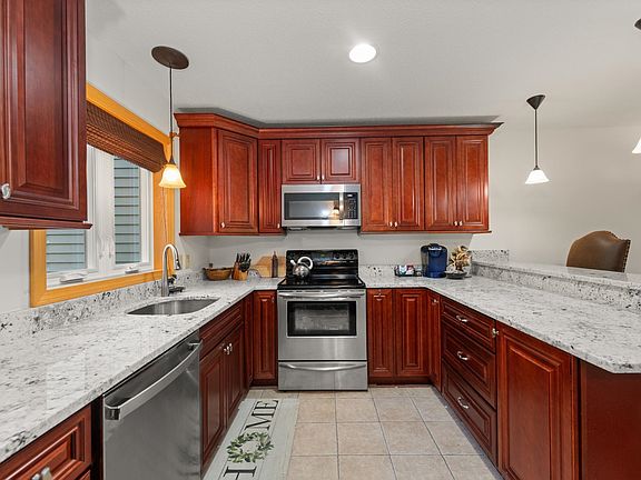 Experience mountain living at its finest in this beautifully updated 3-level condo in Thornton, NH. Step inside to a remodeled kitchen featuring solid cherry cabinets, granite countertops, stainless steel appliances, and ceramic tile flooring — a perfect blend of style and functionality. The spacious living room offers a wood-burning fireplace for cozy evenings and slider doors that open to a private patio where you can take in breathtaking mountain and sunset views. Upstairs, the primary bedroom suite includes its own balcony with matching mountain views and an ensuite bath. A second bedroom and full bath complete the second level. A versatile loft space on the third level serves perfectly as a third bedroom, home office, or recreation area. This well-maintained association recently added brand-new pickleball courts and has an in-ground pool and hot tub surrounded by 300 wooded acres for exploring. With fresh exterior paint, new paving, and impeccable grounds, Mountain River East continues to stand out as one of Thornton’s most sought-after communities. Enjoy the comfort of modern updates, stunning views, and resort-style amenities — all within minutes of Owl's Nest Resort, Waterville Valley, Loon Mountain Ski Resort, and countless hiking trails. There are activities for all four seasons and all within an easy drive from neighboring states.