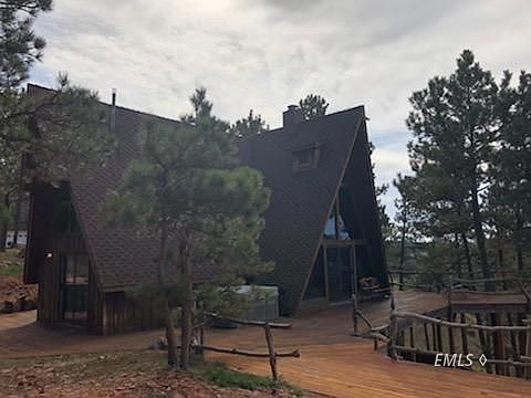 One of a Kind home in the Pine Hills Ranchettes. This A-frame has been beautifully redone with top of the line fixtures. The open space kitchen and living room has gorgeous view of the canyon. There is a pantry area and a large bathroom area on the main floor. The loft area has the bedroom and an accessory room that could be used as another small bedroom. Underneath the back side of the cabin consists a room that has been converted into a heated laundry room for the washer & dryer. Wrap around deck offers views that will take your breath away. A 30x40 metal shop was built in 2018 with electricity, power, EDO, and a wood burning stove. 800 gallon water cistern. New septic system was installed in 2017.
