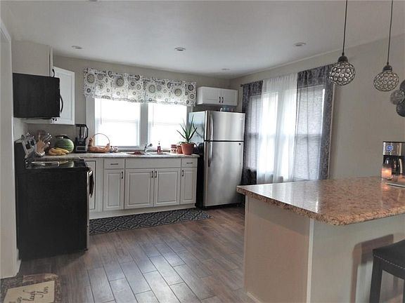 Polished to shine! Pretty entry with nook just perfect for desk or piano. Large family room with laminate flooring is open to the new kitchen, with bright white cabinets, stainless steel smooth top range and refrigerator...everything was replaced. Breakfast bar is just enough separation between the living spaces. Stylish gray paint , white woodwork. Remodeled bathroom with newer vanity, stool,tile work and flooring. Roof about 3 years old. Basement is perfect for storage or small DIY projects. Back yard has thriving gardenand chicken coop. House has newer insulation in walls and attic.