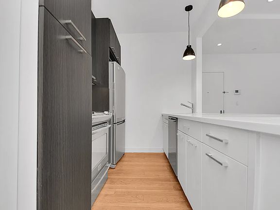 2-Bedroom, 2-Bathroom Apartment with Balcony Step into this gorgeous, light-filled unit featuring expansive windows that bathe the interiors in natural sunlight. The wide-plank white oak flooring and industrial-style design create an open and airy atmosphere, complemented by sleek recessed lighting throughout. The chef-inspired kitchen boasts stainless steel appliances and pristine white countertops and dark cabinetry, making it perfect for both everyday cooking and entertaining. Whether you're hosting a dinner party or mixing up cocktails, this kitchen is built to impress. The bathrooms combine elegant mosaic tile accents with custom vanities, luxurious rain showerheads, and oversized soaking tubs for the ultimate relaxation experience. Both spacious bedrooms offer ample room for furniture, including queen beds and bureaus, double closets for all your storage needs. For added convenience, there's an in-unit washer and dryer. Just steps from the best of Williamsburgfeaturing top shopping, dining, and entertainment options and 4 blocks from the L train. Additional Info: Application Fee: $20 per tenant/guarantor Security Deposit: $7,000.00 First Month's Rent: $7,000.00 Good Faith Deposit with application: $7,000.00 will become your security deposit Pet Fee: $50/month per pet Parking: $350/month No Utilities included Photos are representative of the unit's finishes.