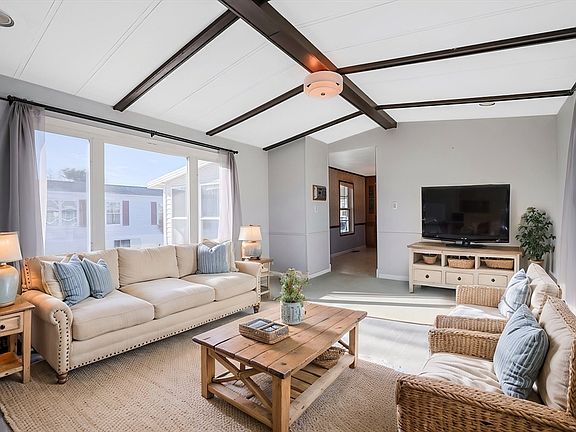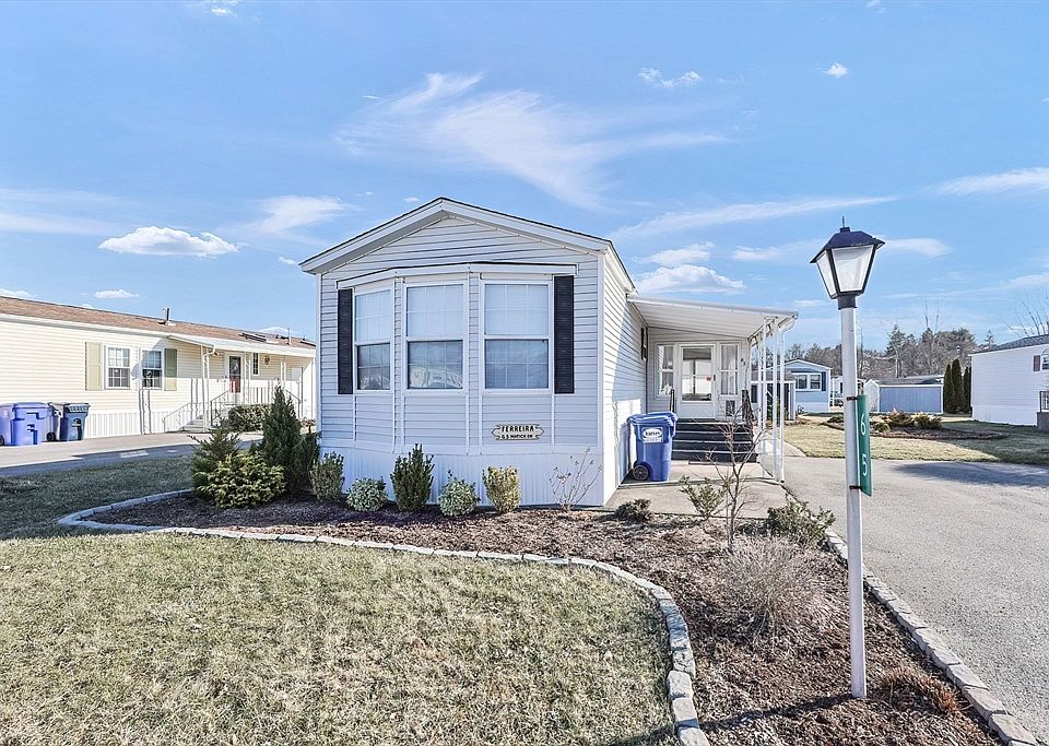 Charming 2-bedroom, 2-bathroom home in the 55+ community at Rocky Knoll Estates! This well-maintained single-wide features a spacious eat-in kitchen with skylight, living room with cathedral ceilings, a large primary bedroom with private ensuite with skylight and walk in closet at the back, a 2nd full bath, a large 2nd bedroom, and a convenient laundry room with side yard access. Relax in the large 3-season porch or enjoy the vibrant community amenities, including a welcoming clubhouse for social gatherings. Central AC, Gas Heat (2005), electric Water Heater (2024). Additional features include a designated parking area, a large storage shed, patio, and a monthly park fee of $715 covering taxes, water, sewer, trash removal, and street snow removal. Conveniently located near highways, shopping, dining, and essential services, this home offers the perfect blend of comfort and accessibility for downsizing or embracing a low-maintenance lifestyle! Qualifies for mobile home financing or cash