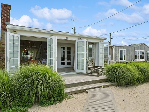 Rental Registration #: 24-813 Designed to embrace the natural beauty that surrounds it, this cozy, renovated Navy Beach front rental is in one of the most charming locations in Montauk. Located a stone's throw from the serene shores of Fort Pond Bay, the stylish interiors are accentuated with a wall of French doors that open entirely to frame the beautiful bay views, while the kitchen seamlessly connects to an outdoor bar and dining area with built-in Weber Genisis grill. The home features two bedrooms with a pullout couch in the living room. One bedroom can be furnished as a nursery if requested. The fire pit in the front yard becomes the ultimate vantage point to watch those gorgeous summer sunsets over Fisher's Island. Situated moments from one of Montauk's most beloved restaurants, Navy Beach, and a short distance to the LIRR, Duryea's, The Surf Lodge, Montauk's downtown, and ocean beaches. [[Rental Registration # 24-813]]